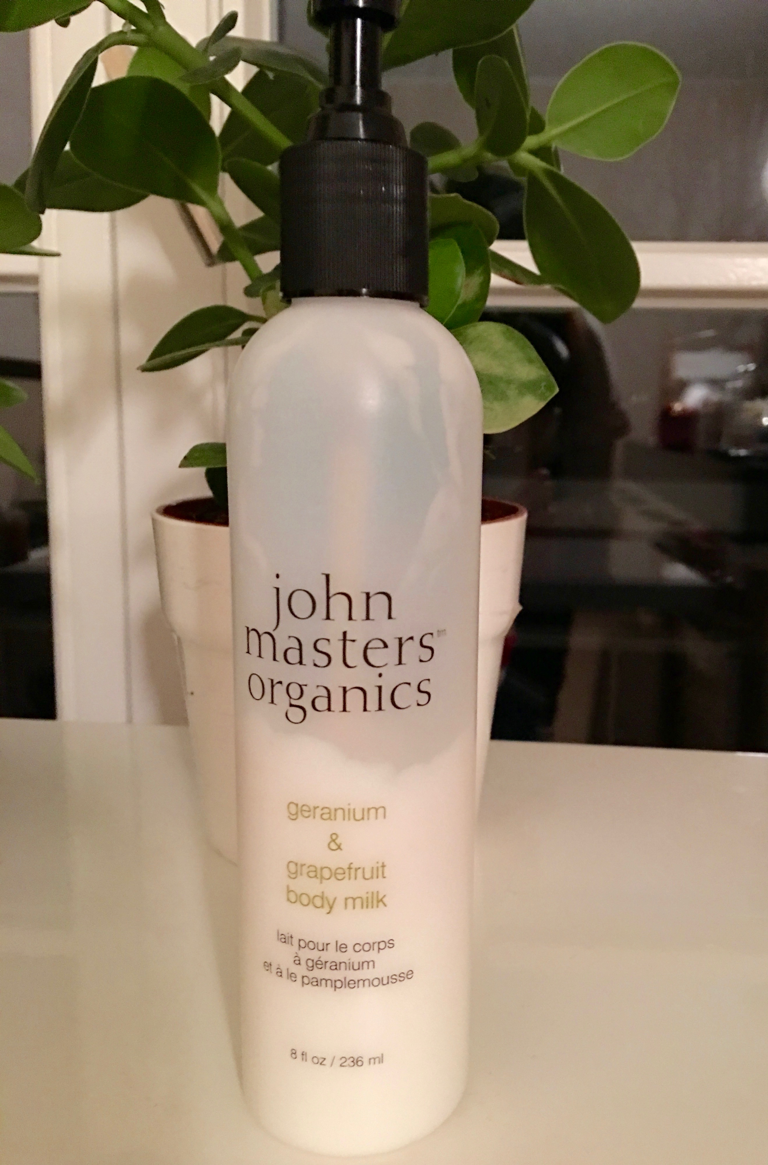 Dernier produit testé ce mois-ci, la nouvelle version du lait corps John Masters Organics, au géranium et pamplemousse. Un peu inquiète quand même, le géranium n’est pas réputé dans la catégorie des fleurs odorantes, j’ai voulu faire confiance à la marque dont j’adore de nombreux produits et notamment le lait corps à l’orange douce (mythique). J’ai retrouvé la texture… parfaite, et l’odeur est bien agréable. Plus douce que la version à l’orange, plus subtile aussi mais moins frappante aussi. Question de goût, sûrement, mais je me verrais bien alterner le lait au géranium avec celui à l’orange.